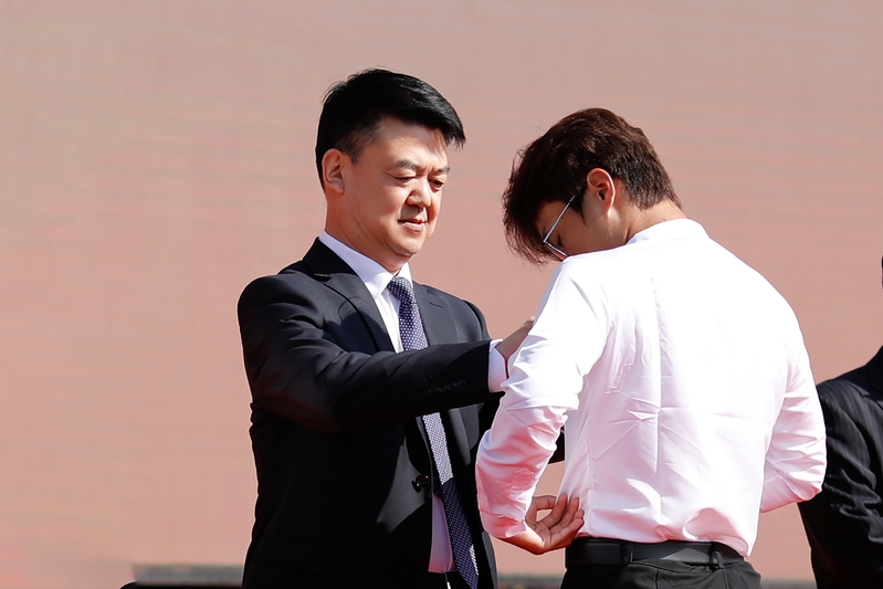 典礼上,校领导为新生代表佩戴校徽。全体新生为自己戴上了这枚象征“徐工院人”身份的徽章,并在电气与控制工程学院浦籍巍同学的带领下共同宣誓,立志传承“格物致知 敬业乐群”的校训精神,刻苦学习,勇于创新,励行奋进。