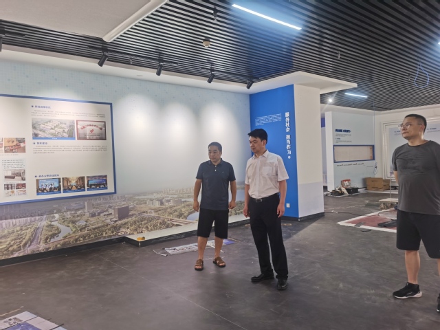 刘洋书记来到施工现场,实地查看了校史馆的整体建设布局、内部装修细节以及设施安装情况。每到一处,刘书记都与现场施工人员亲切交谈,详细询问工程进度、施工难点以及预期完工时间等。对工作人员在高温环境下依旧保持高度敬业精神,扎实推进项目建设的工作态度给予了充分肯定。