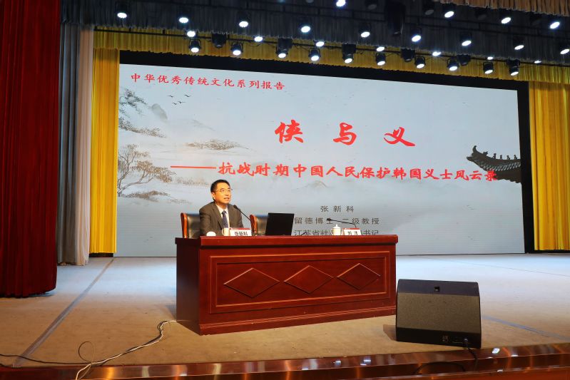 揭幕仪式后,张新科以《侠与义——抗战时期中国人民保护韩国义士风云录》为题,为在场师生开设了“龙湖大讲堂”首场讲座。讲座史料翔实、情感深厚,鼓励青年学子以史为鉴、勇担使命,对当代青年的成长具有深刻的现实意义。整场报告气氛热烈,现场掌声不断。