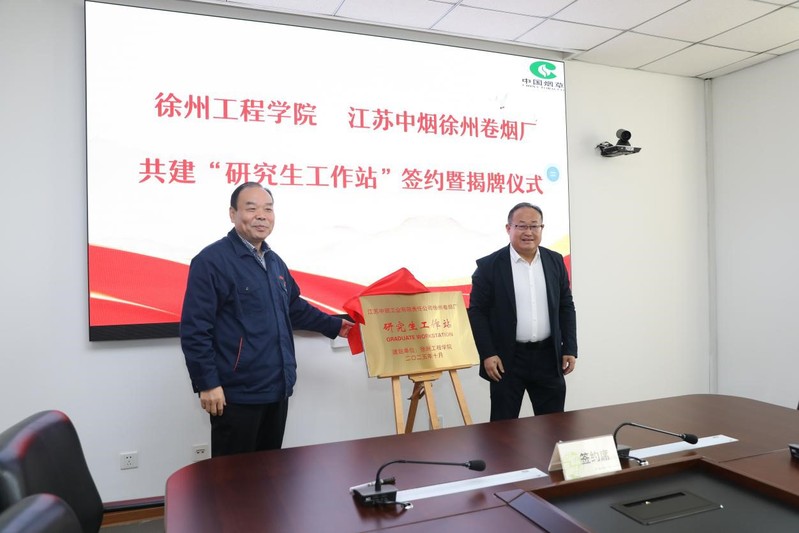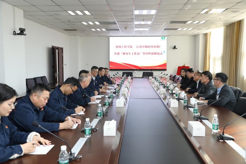 11月5日,“徐州工程学院—徐州卷烟厂研究生工作站”签约暨揭牌仪式在江苏中烟工业有限公司徐州卷烟厂举行。副校长陈新忠,徐州卷烟厂党委副书记、工会主席梁会宽出席活动,双方相关部门负责人及代表参加会议。该工作站是徐州工程学院自获批硕士学位授予单位后建立的首个研究生工作站,标志着学校在高层次应用型人才培养与产教融合方面迈出关键一步。