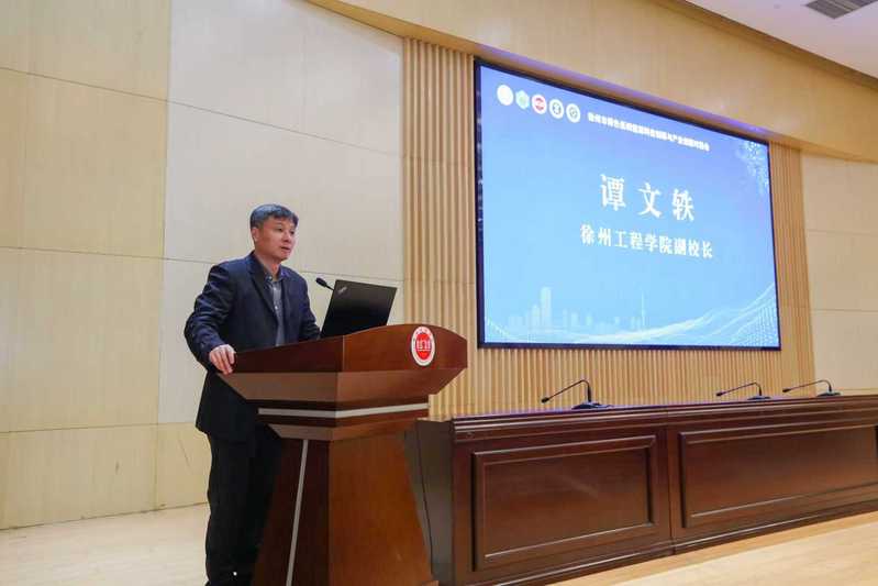 谭文轶代表组委会在开幕式上发表讲话。他指出,作为扎根徐州的应用型高校,学校秉持绿色低碳和可持续发展理念,通过构建“链群对接”学科生态、打造“产学研用”协同样板、搭建“双向赋能”服务平台,积极服务地方区域发展。他表示,此次会议的召开将助力徐州市“343”创新产业集群高质量发展,为徐州市正在全力冲刺的两千亿级绿色低碳能源产业集群注入强劲的智力动能。