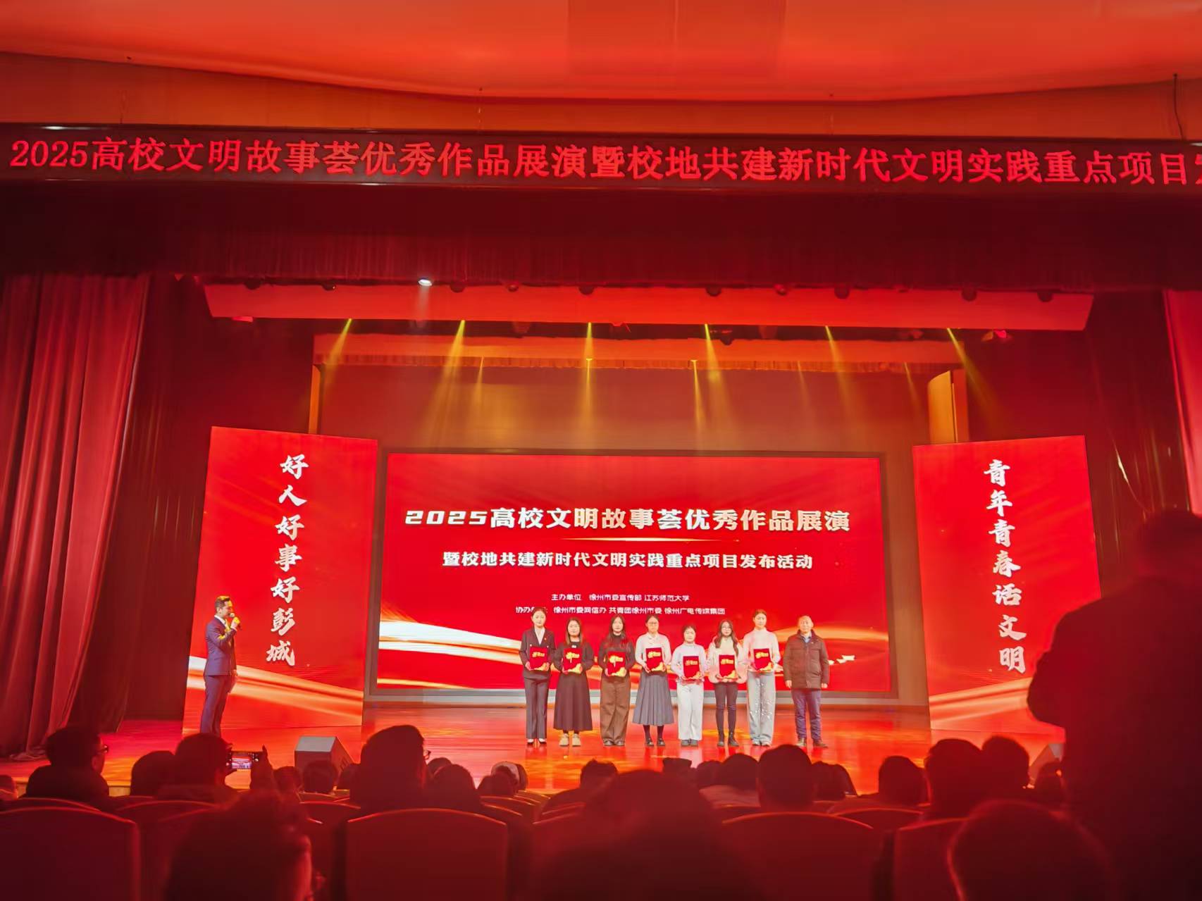 近日,由徐州市委宣传部、市委网信办、共青团徐州市委、徐州广电传媒集团联合主办的 “好人好事好彭城·青年青春话文明”2025徐州高校文明故事荟比赛落幕。在校团委的组织动员与各学院积推报下,我校学子表现优异,共获个人组二等奖1项、优秀奖1项,团队组三等奖1项。