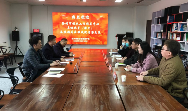 2月28日下午,徐州市创业工作指导中心副主任王枫、徐州启迪双创科技企业孵化器有限公司总经理项焕涛一行就校-政-企对接合作到我校走访交流。