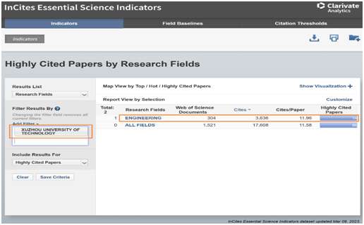 ESI数据库根据论文总被引次数对全球各机构进行排名,依据此次最新公布的ESI数据(覆盖时间为2012年1月1日至2022年12月31日)显示,这期我校工程学学科总发文304篇,总被引3636次,篇均被引11.96次,取得突破性成绩,使我校成为新晋该学科ESI排名前1%的单位之一。