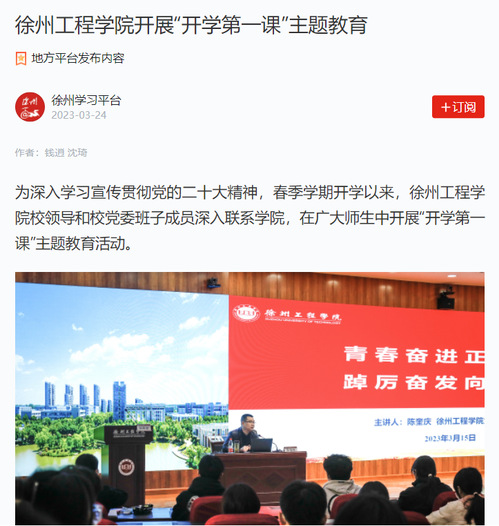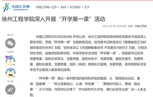 3月24日和3月20日,学习强国平台、中国江苏网分别报道我校“开学第一课”主题教育活动。