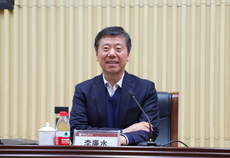报告会前,陈奎庆书记、张农校长与李廉水教授就学校事业高质量发展、人才引培、国际交流等问题进行了深入交流。
