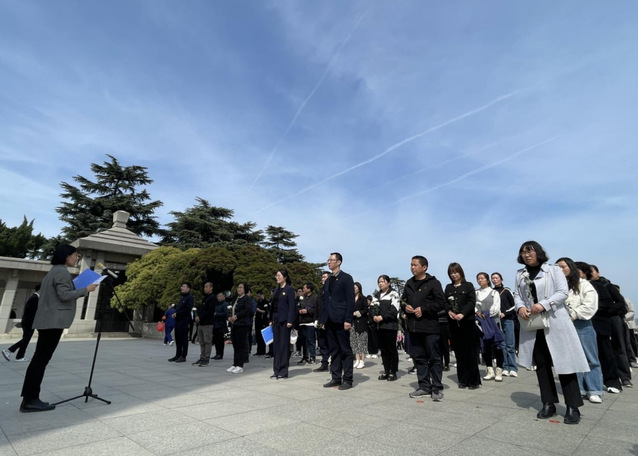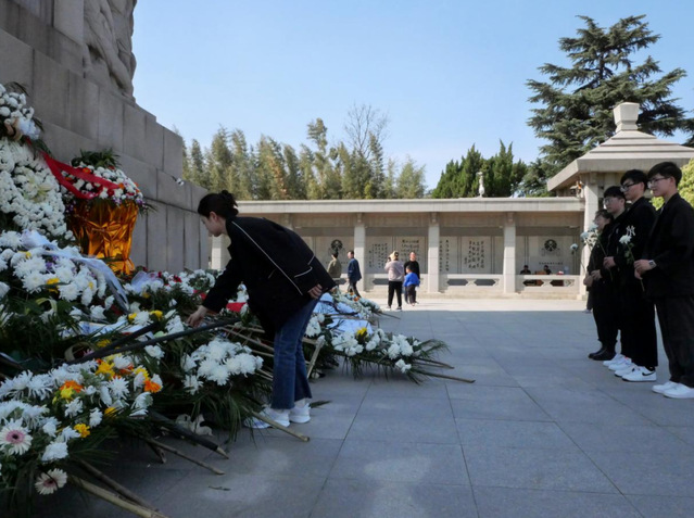 校团委组织校院学生组织代表赴淮海战役烈士纪念塔开展“清明祭英烈”祭扫活动。伴随着庄严的国歌声,同学们在烈士墓前肃立默哀、寄托哀思。校国旗护卫队向烈士纪念碑敬献花圈,表达对烈士的崇高敬意和深切悼念。学生代表21中文1王雨馨在发言中表达对先烈的缅怀之情,表示将继承和发扬英雄先烈勇敢无畏、无私奉献的革命精神,坚定不移听党话、跟党走,怀抱梦想又脚踏实地,敢想敢为又善作善成,立志做有理想、敢担当、能吃苦、肯奋斗的新时代好青年。