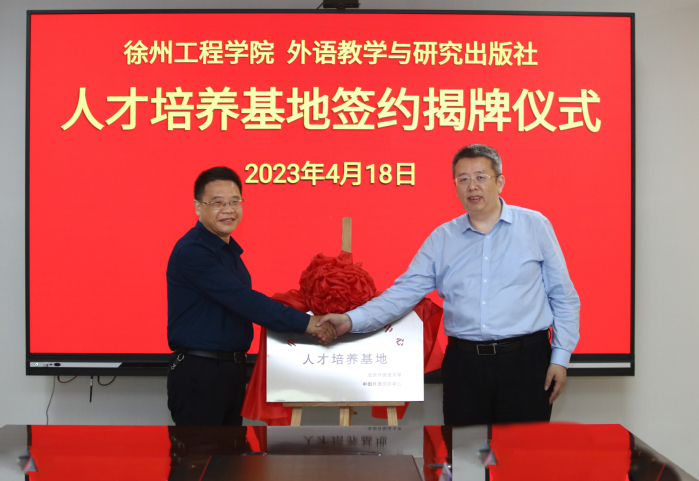 近日,徐州工程学院与北京外国语大学中国外语测评中心举行国际人才培养基地合作签约揭牌仪式。外语教学与研究出版社王建平主任,我校副校长曹杰、教务处及外国语学院相关负责人出席活动。外国语学院党委书记周珊珊主持工作交流会。