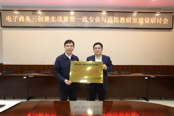 李琪教授为我校“教育部电子商务专业虚拟教研室徐州工程学院基地”授牌。
