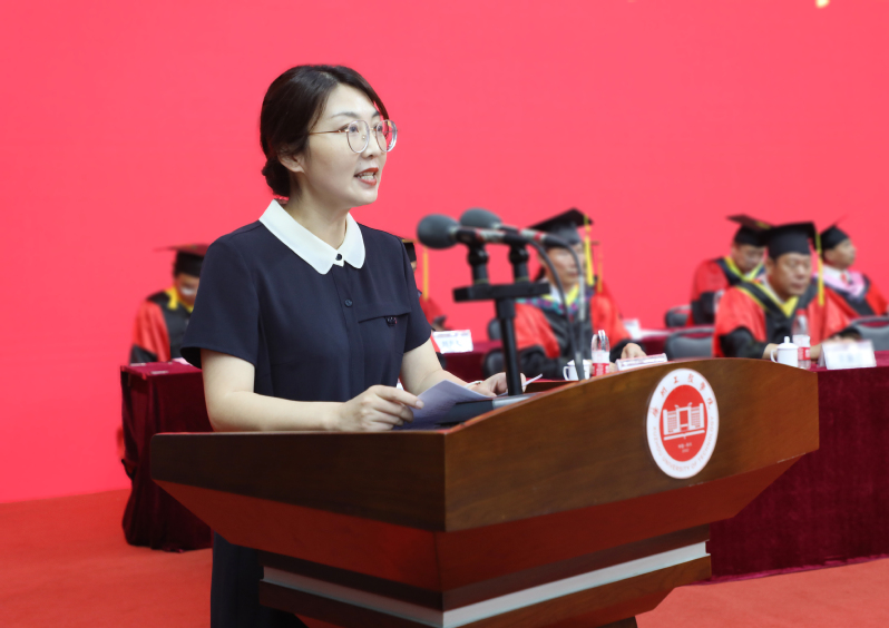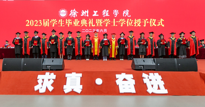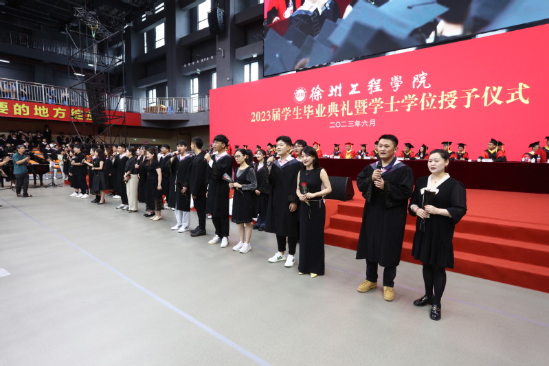 师范学院庄妍老师作为教师代表发言,她希望所有毕业生志存高远、脚踏实地,聆听时代的声音,把握时代的脉搏,让激昂的青春与奋进的时代“双向奔赴”。材料与化学工程学院刘东升同学代表毕业生发言。他重温了在徐工院求学的美好记忆,勉励同学们要树立鸿鹄之志,练就过硬本领,争做时代先锋,以拳拳赤子之心谱写辉煌的人生华章。