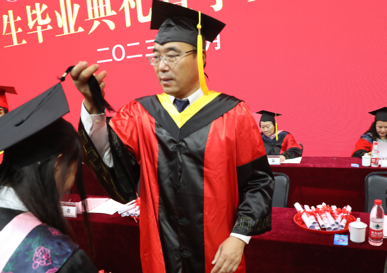全体校领导、校党委常委为2023届毕业生代表行拨穗礼