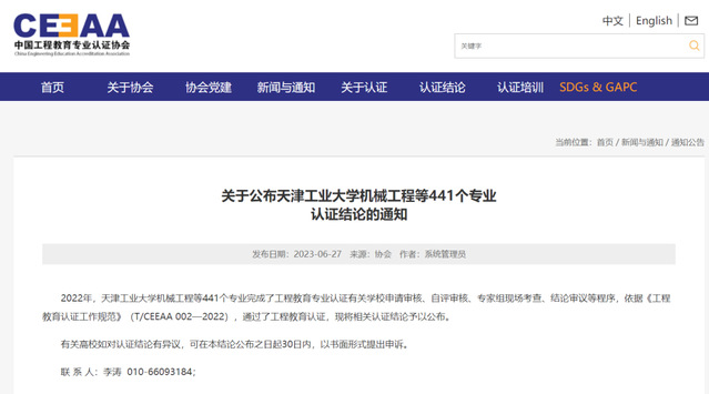 近日,中国工程教育专业认证协会发布通知,公布了2022年参加全国工程教育专业认证的认证结论。经过学校申请审核、自评审核、专家组现场考查、结论审议等程序,依据《工程教育认证工作规范》(T/CEEAA 002—2022),我校机械设计制造及其自动化专业顺利通过工程教育认证,有效期为6年(2023年1月至2028年12月)。