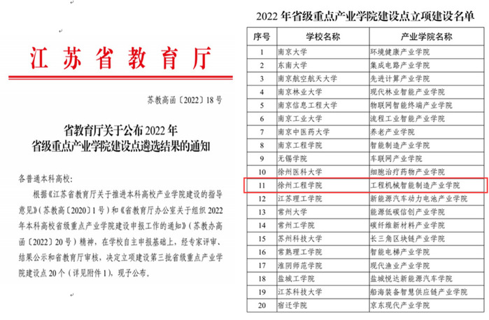 坚持主动对接行业企业,服务区域经济发展,对接徐州“343”新兴产业群构建专业群,促进教育链、人才链与产业链、创新链有机衔接。先后牵头成立“中国光伏工程产教融合协同创新平台”“江苏机械制造产业院士协同创新中心徐州分中心”等;获批省决策咨询研究基地,入选首批江苏省大学生创新创业实践教育中心。