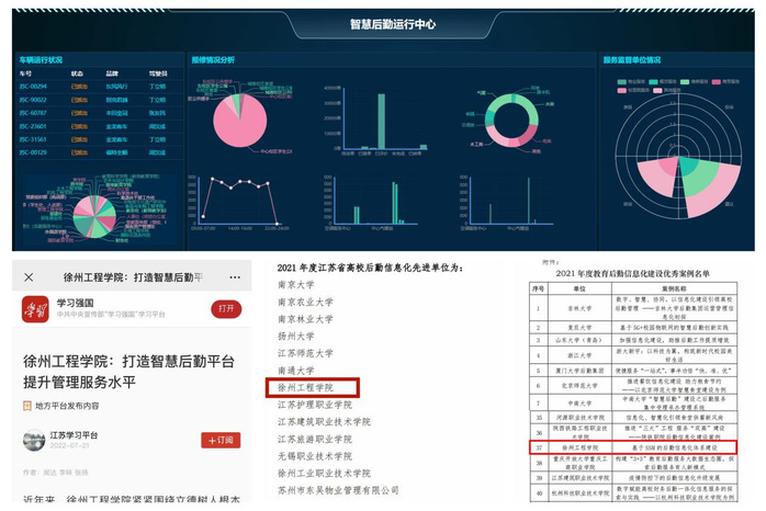 完成建设以“一平台一实体三模块”为框架的后勤信息化保障体系,实现后勤服务的信息互通、资源共享及服务子平台的全覆盖。信息化建设成果荣获全国高校后勤信息化建设“领跑单位”“先进单位”以及江苏省教育后勤信息化建设“优秀示范单位”等称号。