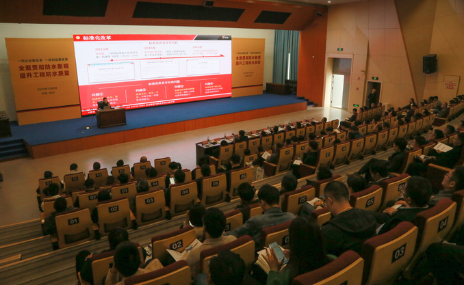 会上,中国建筑学会建筑防水学术委员会副主任、中国工程建设标准化协会(CECS)标准审查专家伍盛江对《建筑与市政工程防水通用规范》(GB55030-2022)进行了条款解读与应用解析,并与参会代表进行了互动答疑。