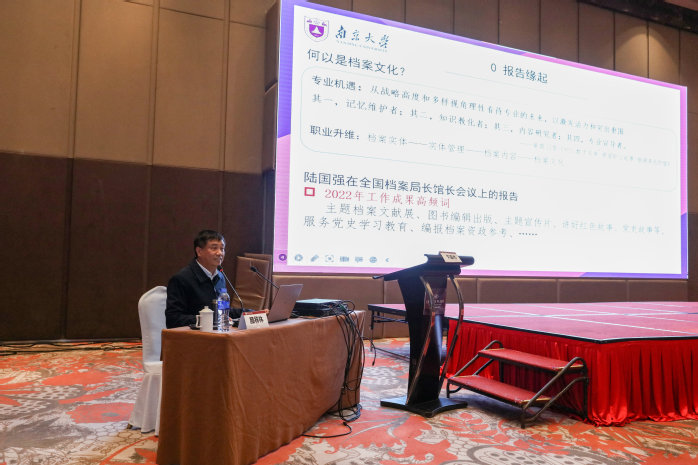 会议邀请杨冬权和颜祥林两位专家,围绕“学习贯彻习近平文化思想,开创新时代高校档案文化建设新局面”的主题做了两场主旨报告。报告指出要加强档案自信,全面开发并用好、用足、用活档案资源,把档案文化建设融入到高校大思政课程建设中,把高校档案凝聚成高校文化,让档案工作更好的为人民服务、为现实服务、为实现现代化服务。与会学者专家纷纷表示,将以更加团结务实、积极开拓进取的作风,奋力开创江苏高校档案工作高质量发展新局面。