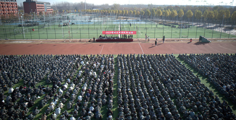 本年度军训从11月5日至19日,共计14天,2021级和2023级共11196名学生参训,驻徐73087部队承训,70名退役复学学生协助训练,辅导员全时段跟训。