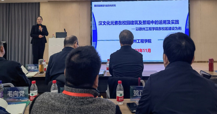 在论坛专家主题报告环节,我校副校长姜慧教授受邀为与会人员做了题为《汉文化元素在校园建筑及景观中的运用及实践—以徐州工程学院东校区建设为例》主题分享,通过徐州地域文化特色、文化性格、徐州典型汉文化元素的分析,从“设计构思”“建筑体现”和“景观体现”等几个方面剖析如何将汉阙、汉“进贤冠”、汉画像石等汉文化元素融入东校区典型建筑及景观建设,形成与众不同的校园建筑文化特色。此次发言让与会人员了解了徐州工程学院东校区标志性建筑物的文化内涵,同时充分展示、弘扬了徐州汉文化独特魅力与现代传承。