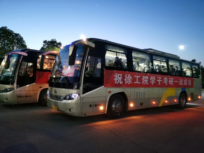 据悉,今年我校共有2442名学生报名参加硕士研究生入学考试,主要分布在徐州市9个考点。在前期准备的环节中,充分考虑到考生的校区、考点、乘车人数等因素,科学制定行车路线与停靠地点,确保送考安全有序。本次送考活动共安排大巴车11辆,各学院辅导员全程跟车带队,为全体考生爱心护航。