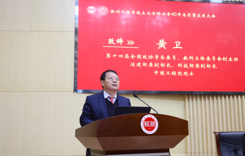 黄卫院士向我校土木学科办学40年表示热烈祝贺。他指出,徐州工程学院土木学科坚持主动融入国家战略和区域经济社会发展大局,培养造就了众多行业精英,取得了一批批重要的科技和创新成果,为土木学科等相关学科的高质量发展做出了重要贡献。诚挚期待土木学科立足新时代,以高水平的人才培养和科技创新成果,为建筑行业高质量发展注入澎湃动能;衷心祝愿徐州工程学院早日建成特色鲜明的一流应用型大学,为推进中国式现代化作出新的更大贡献。