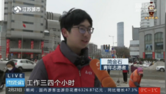 在贾汪区李井村,该院学生工作负责人在春节前夕看望慰问了3户困境家庭,详细询问儿童的生活和健康情况,认真倾听他们的诉求,并鼓励他们保持乐观豁达的心态和面对困难的勇气,并送上慰问金和节日祝福和问候。近期,徐州的雨雪天气导致路面结冰湿滑。在徐州市泉山区,该院简金石、赵恒、杨佳永莹等同学立即报名参加泉山区扫雪除冰青年突击队,深入街道社区、主干道、十字路口等地开展清雪除冰,疏导交通,守护群众出行,学院简金石同学获江苏城市频道专题报道。