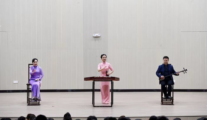 近日,师范学院特邀徐州琴书代表性传承人徐妮娜携《时代楷模张桂梅》演出团队赴我校演出。活动旨在用中华优秀传统文化教育人,用时代孕育的伟大教育家精神感染人,用大思政的课堂培养人。副校长王逢博,学工处及师范学院师生代表现场观看了演出。