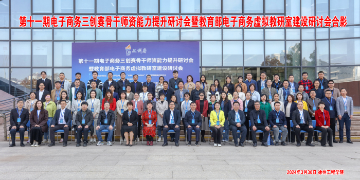 3月29日-31日,第十一期电子商务三创赛骨干师资能力提升研讨会暨教育部电子商务专业虚拟教研室建设研讨会在我校举办。此次研讨会由全国大学生电子商务“创新、创意及创业”挑战赛竞赛组织委员会、教育部电子商务专业虚拟教研室主办,我校商学院、教育部电子商务专业虚拟教研室徐州工程学院基地承办。三创赛组委会主席李琪,副主席贺盛瑜、彭丽芳,我校校长张农,市商务局四级调研员范沁茹出席活动。来自全国 15个省市自治区40 余所高校和企业、出版社的近百名专家学者参加了会议开幕式。研讨会分别由我校商学院院长王凤羽和商学院副院长杨雪主持。