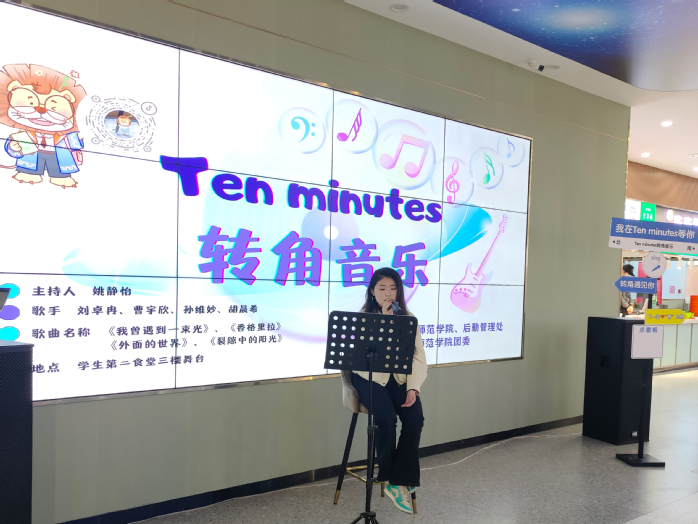 为营造校园浓厚艺术氛围,搭建大学生放松身心、展示自我的平台,近日,师范学院联合后勤管理处于学校食堂举办Ten minutes转角音乐系列活动。