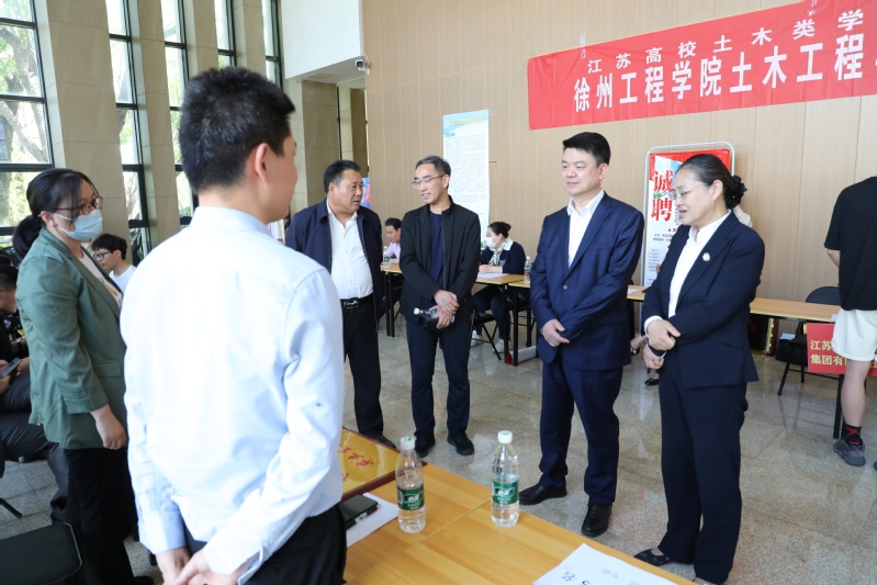 为深入推动校地融合发展,促进土建类毕业生高质量就业,助力地方建筑业发展,5月10日下午,我校联合徐州市住房和城乡建设局在大学生活动中心举办2024届土建类毕业生专场招聘会暨优质就业基地授牌仪式。我校党委书记刘洋、副校长姜慧,徐州市住房和城乡建设局副局长王立东、建筑业管理处处长岳林等校地领导参加招聘活动,深入现场指导。