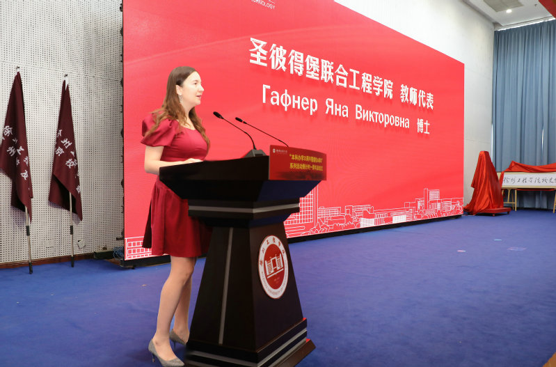 圣彼得堡联合工程学院亚娜·维克托洛夫娜博士作为俄方代表发言,她回顾了徐州工程学院和俄罗斯圣彼得堡电子科技大学15年来的合作历程和丰硕成果,预祝两校进一步增进友谊,加强合作,培养更多具有国际视野、创新精神和社会责任感的优秀人才。