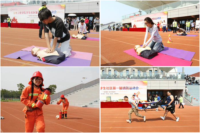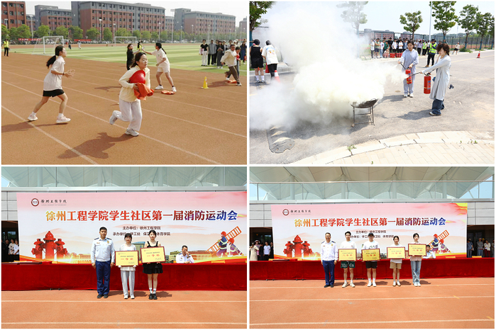 为进一步营造“人人重视消防,人人参与消防”浓厚校园氛围,增强大学生的消防意识及自救能力,5月18日上午,我校学生社区第一届消防运动会在东校区田径场举行。副校长曹杰、王逢博,徐州市消防救援支队副支队长姜浩以及学工处、保卫处、体育学院等部门负责人出席了开幕式。徐州九命猫安全技术培训有限公司参与协办比赛。学生社区以宿舍楼为单位组成的12支代表队的指导教师、运动员、裁判员等300余人参加本次活动。曹杰副校长宣布比赛开幕,王逢博副校长致辞。开幕式由学工处副处长王如全主持。