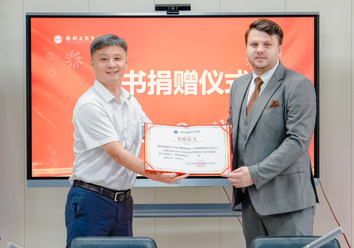 会后,代表团一行考察我校俄罗斯高等教育展场地,参观了图书馆文昭阁、非遗博物馆、圣彼得堡联合工程学院,参加了徐州工程学院首届俄语演讲比赛并向圣彼得堡联合工程学院图书室捐赠了俄语书籍。