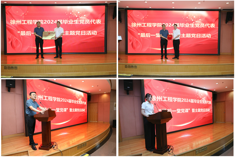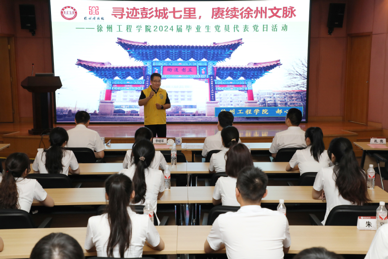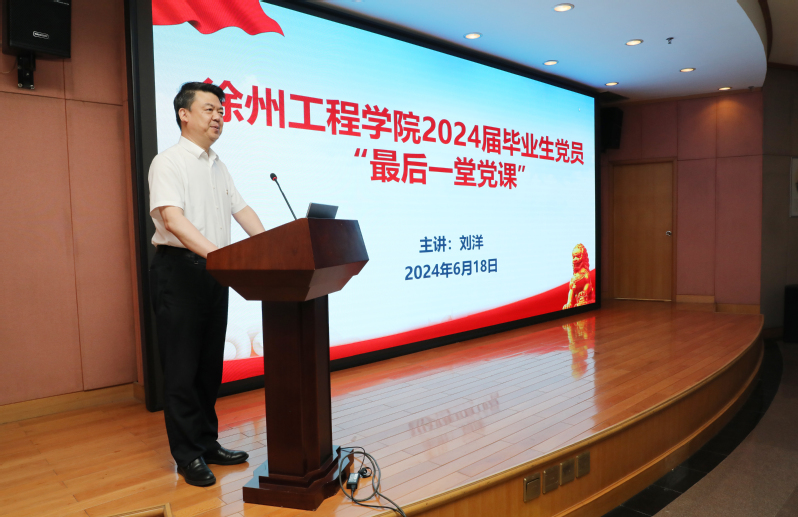 为进一步加强毕业生党员教育,引导毕业生党员在学思践悟中坚定理想信念,在实干担当中锤炼党性修养,推进党纪学习教育走深走实,6月18日上午,我校举行2024届毕业生党员代表“最后一堂党课”暨主题党日活动。校党委书记刘洋出席活动并为毕业生党员代表讲授党课。淮海战役烈士纪念塔管理中心主任贾萍、徐州博物馆馆长李晓军,我校党委常委、组织部部长涂宝军、金融学院党委书记李浩、信息工程学院党委副书记朱淼及2024届毕业生党员代表参加活动。